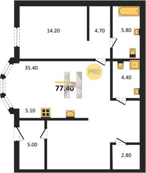 Площадь от 38.8 м2
